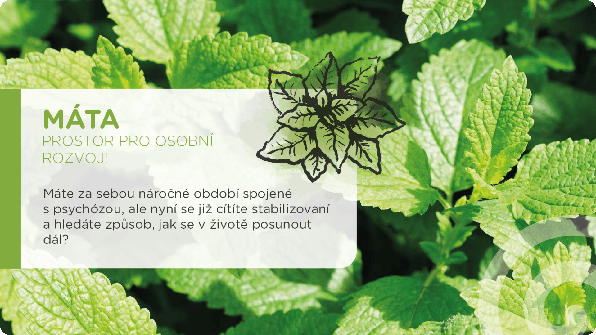MÁTA je součástí širšího konceptu psychoterapeutických skupin DPS Ondřejov označených symboly bylinek. Věříme, že stejně jako má každá bylinka své specifické účinky, potřebuje i každý člověk v různých fázích zotavení jiný typ péče.
